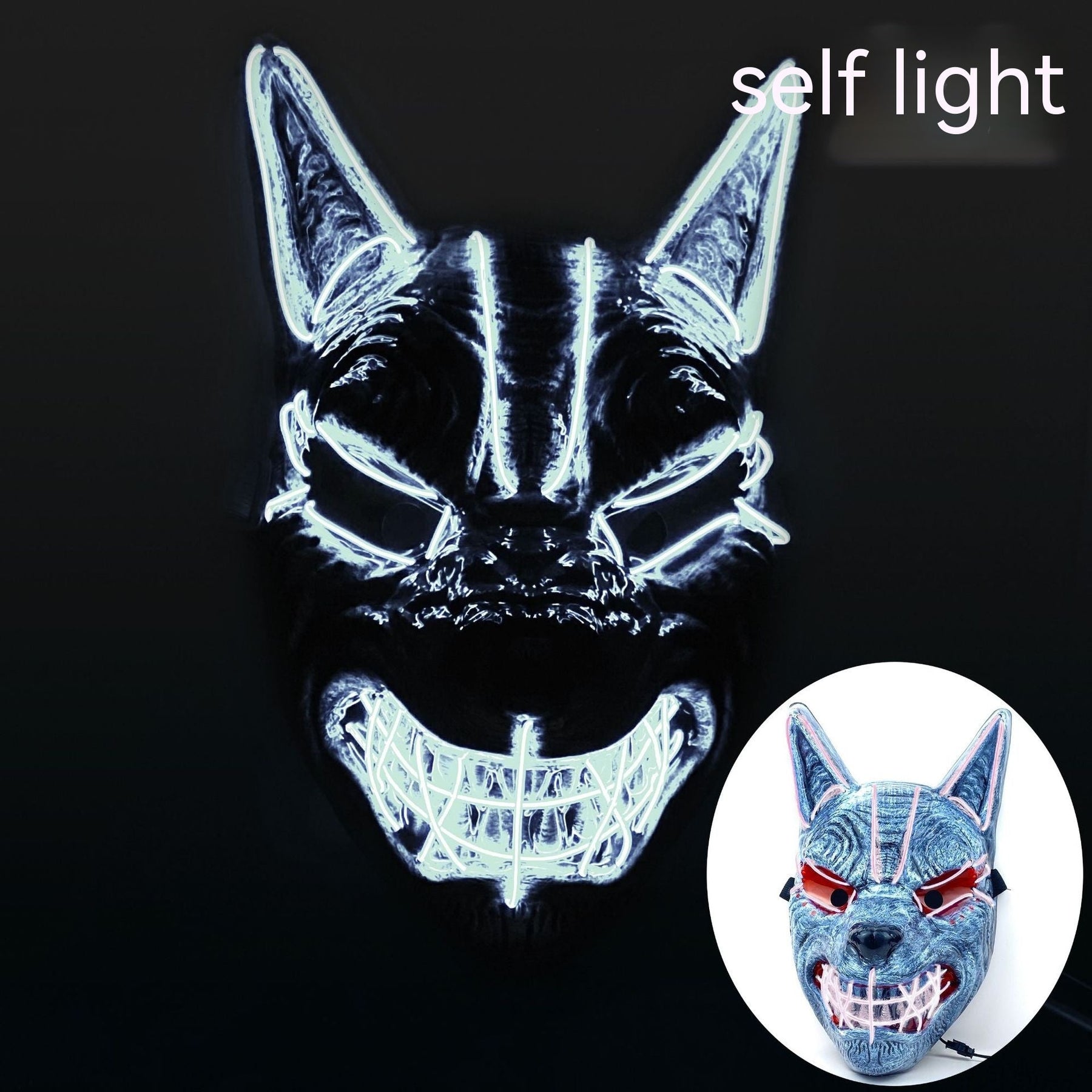 Product information: Function: Luminous Material: Plastic Applicable holiday: Halloween Styling: Blue-wolf head Luminous Mask, red-wolf head Luminous Mask, fluorescent green-wolf head Luminous Mask, pink-wolf head Luminous Mask, orange-wolf head Luminous Mask, yellow-wolf head Luminous Mask, purple-wolf head luminous mask, emerald green-wolf head Luminous Mask, ice blue-wolf head luminous mask, white light-wolf head Luminous Mask Size: 34x18.5cm